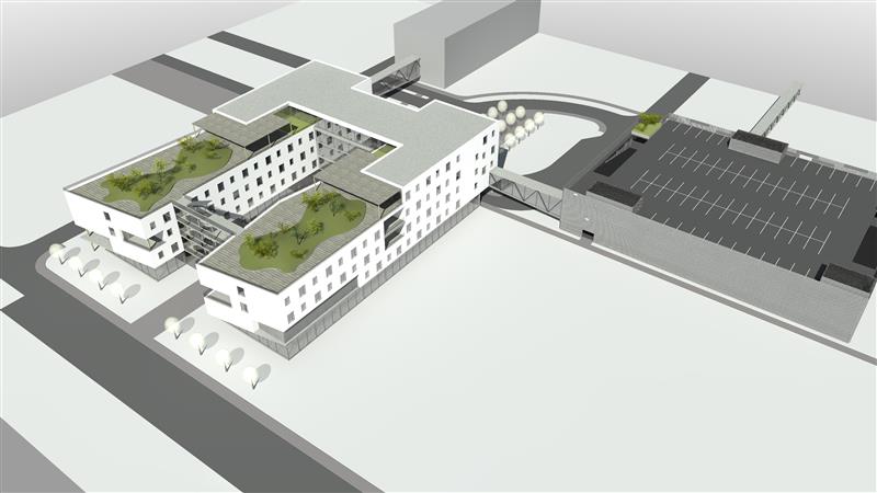 „Budoucí parkovací dům v areále Nemocnici Jihlava umožní řidičům už na konci příštího roku parkování v pěti výškových úrovních. Jednotlivá patra propojí nájezdové rampy, pro pěší bude vybudováno schodiště a výtah. Parkovací dům vyroste v místě, které už nyní pro parkování slouží. V